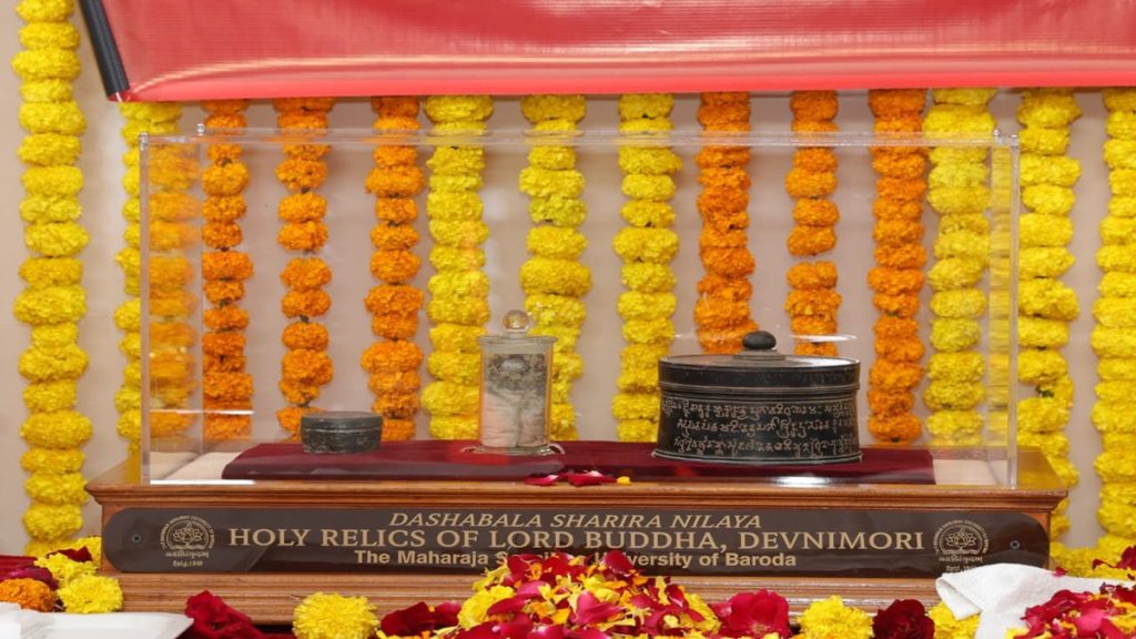 વડોદરાની એમ.એસ. યુનિવર્સિટીમાં સચવાયેલા ભગવાન બુદ્ધના પવિત્ર અસ્થિને આજે સીએમની હાજરીમાં શ્રીલંકા રવાના કરવામાં આવ્યા છે. 1960માં મળેલા આ અસ્થિ પ્રથમવાર કેમ્પસ બહાર નીકળ્યા છે. જાણો આ ઐતિહાસિક કાર્યક્રમની સંપૂર્ણ વિગત.