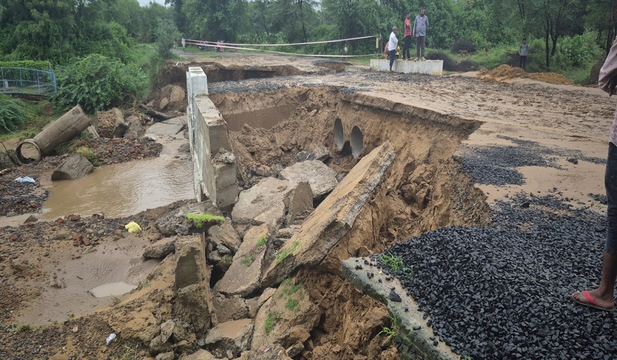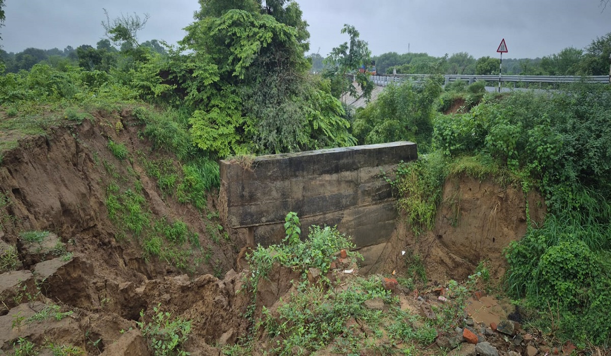 દહેગામ-બાયડ હાઇવે પર આવેલા મેશ્વો નદીના બ્રિજ પહેલા સાઈડમાં બનાવેલી પ્રોટેક્શન દિવાલ પાસે મોટું ધોવાણ થયું છે. પાણીનો પ્રવાહ એટલો તેજ હતો કે આ સ્થળે એક વિશાળ ગાબડું પડી ગયું છે.