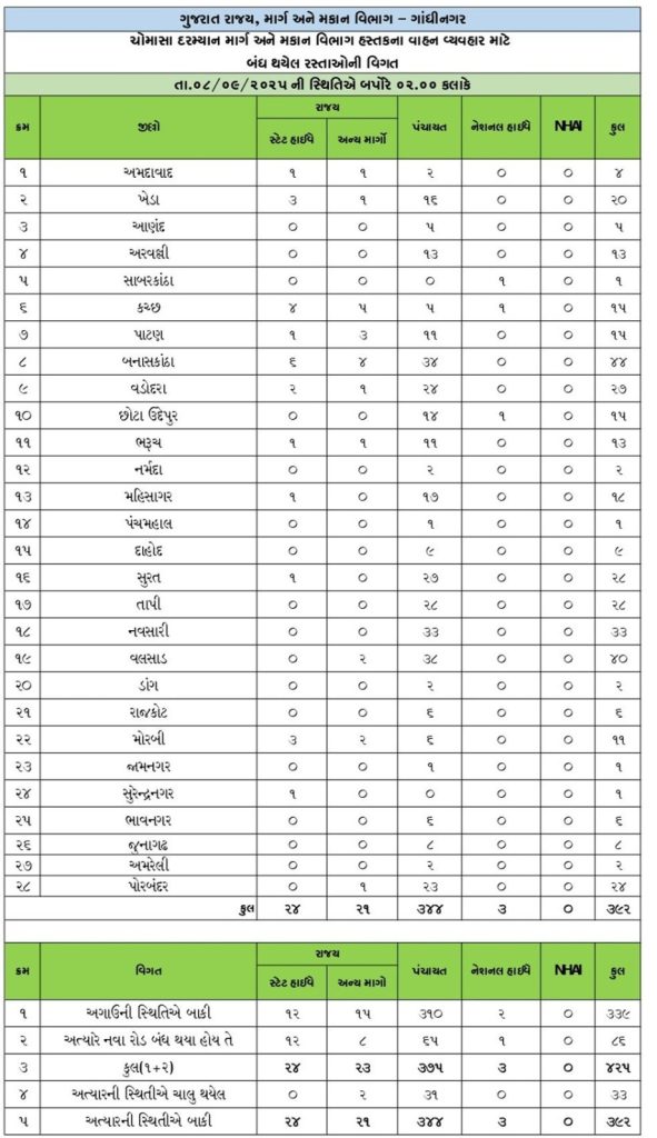 ટ્રાફિક અને રોડની સ્થિતિ: 392 રસ્તા વાહનવ્યવહાર માટે બંધ