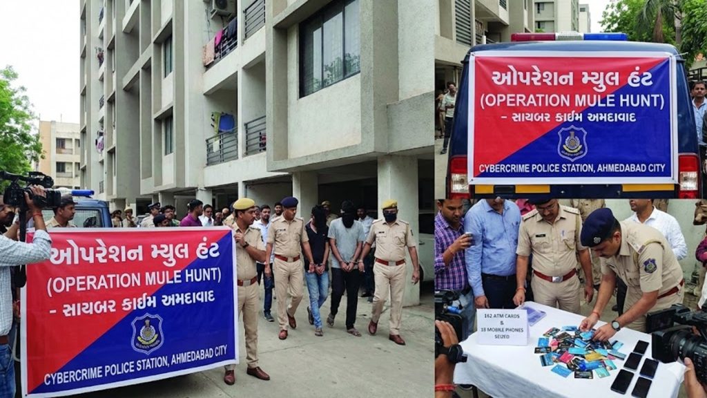 ગુજરાતમાં દિવસેને દિવસે વધી રહેલા સાયબર ફ્રોડ અને ઓનલાઇન છેતરપિંડીના બનાવોને ડામવા માટે રાજ્ય પોલીસ દ્વારા એક વિશેષ મુહિમ છેડવામાં આવી છે. ઓપરેશન મ્યુલ હંટ (Operation Mule Hunt) નામની આ ઝુંબેશ અંતર્ગત અમદાવાદ સાયબર ક્રાઇમ બ્રાન્ચને એક મોટી સફળતા હાથ લાગી છે. શહેરના વાડજ વિસ્તારમાં ધમધમતા એક શંકાસ્પદ નેટવર્કનો પર્દાફાશ કરીને પોલીસે આંતરરાષ્ટ્રીય કનેક્શન ધરાવતા રેકેટનો અંત આણ્યો છે. સાયબર ક્રાઇમની ટીમે બાતમીના આધારે વાડજમાં આવેલા સૌરાબજી એપાર્ટમેન્ટમાં દરોડો પાડ્યો હતો, જ્યાંથી ભાડેના બેંક ખાતાઓ (મ્યુલ એકાઉન્ટ્સ) ઓપરેટ કરતી ગેંગ ઝડપાઈ છે. આ કાર્યવાહીમાં પોલીસે 162 ATM કાર્ડ અને 18 મોબાઈલ ફોન સહિતનો મુદ્દામાલ કબજે કરી રોનીત ઉર્ફે ગણેશ ભિંદા અને લીના ભાટીયા નામના બે આરોપીઓની ધરપકડ કરી છે.