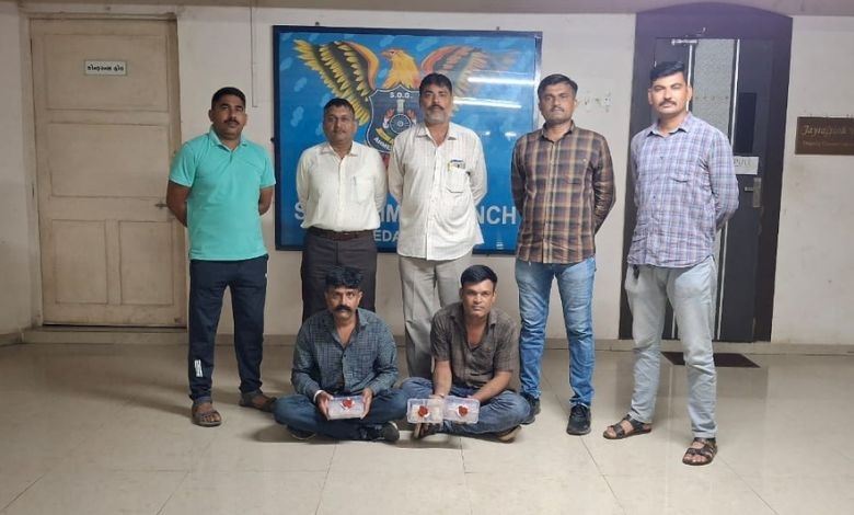 ગાંધીનગર,રવિવાર: અમદાવાદ શહેરમાં નશીલા પદાર્થોની હેરાફેરી રોકવા માટે પોલીસ દ્વારા ખાસ ડ્રાઈવ હાથ ધરવામાં આવી હતી. આ ડ્રાઈવ દરમિયાન એસ.ઓ.જી. (સ્પેશિયલ ઓપરેશન ગ્રૂપ) ટીમને ગુપ્ત બાતમી મળી હતી કે અરવલ્લી જિલ્લાના બે યુવકો શહેરમાં નશીલા પદાર્થોની હેરાફેરી કરી રહ્યા છે. આ બાતમીના આધારે પોલીસે નિકોલ વિસ્તારમાં વોચ ગોઠવી હતી, જેમાં મોટી સફળતા મળી.